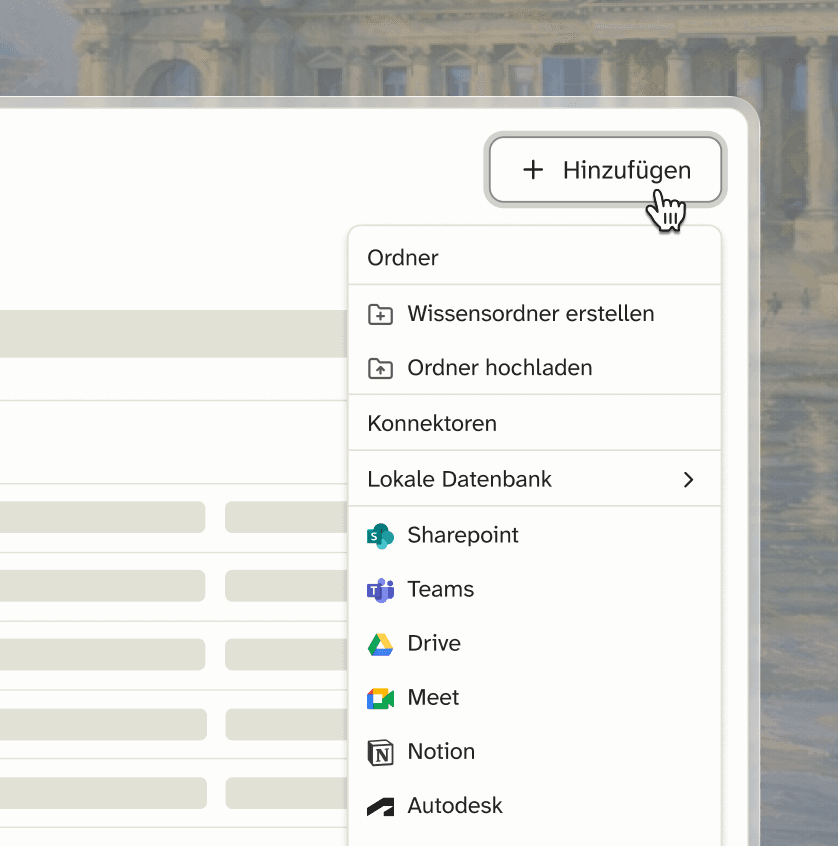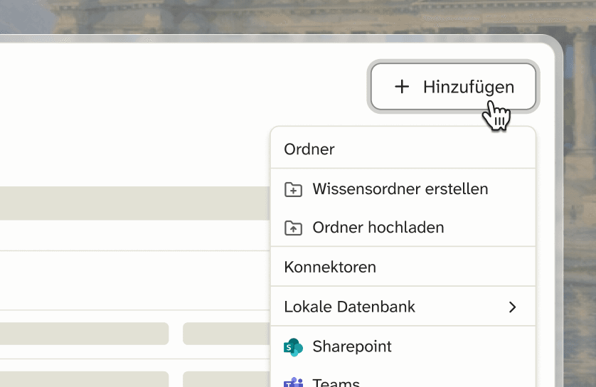 Firmenwissen lässt sich einfach integrieren und steht sofort für die Arbeit mit Reiner Chat und den Agenten bereit.